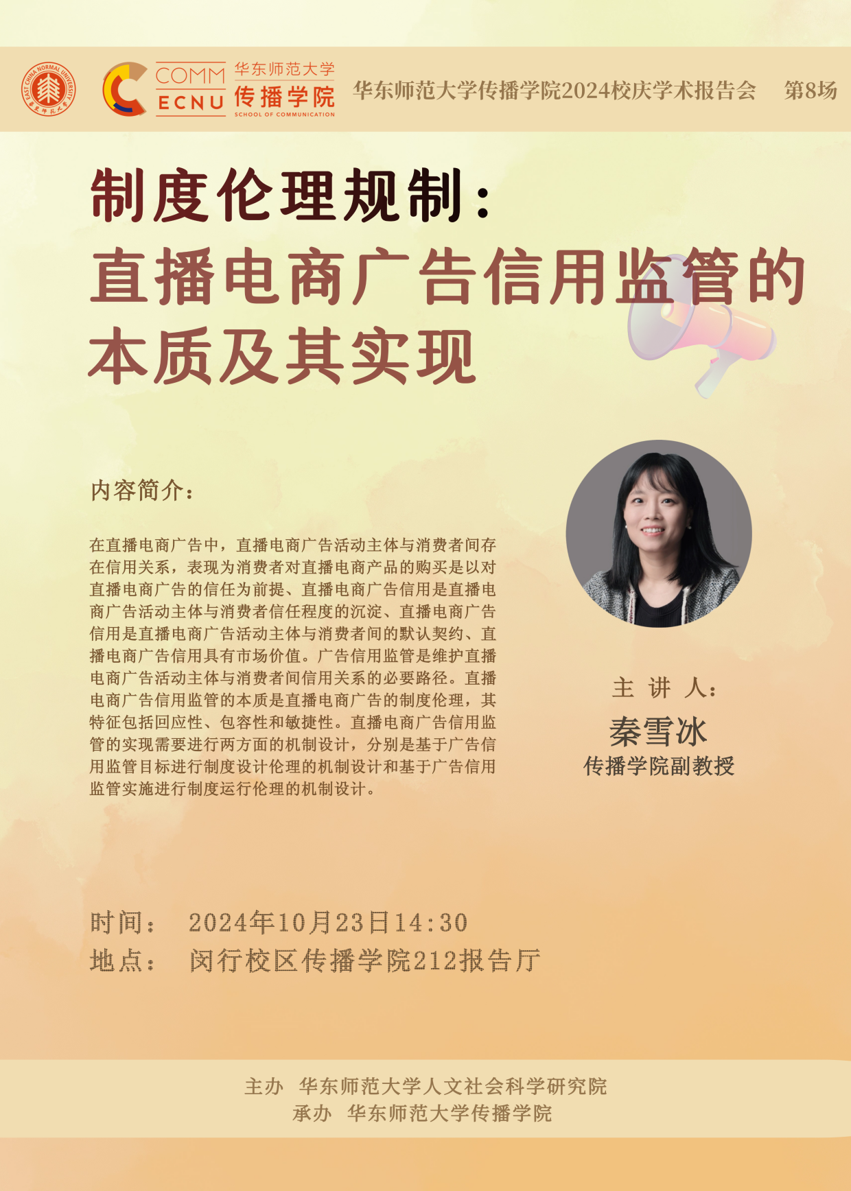 校庆学术报告会 | 秦雪冰:制度伦理规制:直播电商广告信用监管的本质及其实现