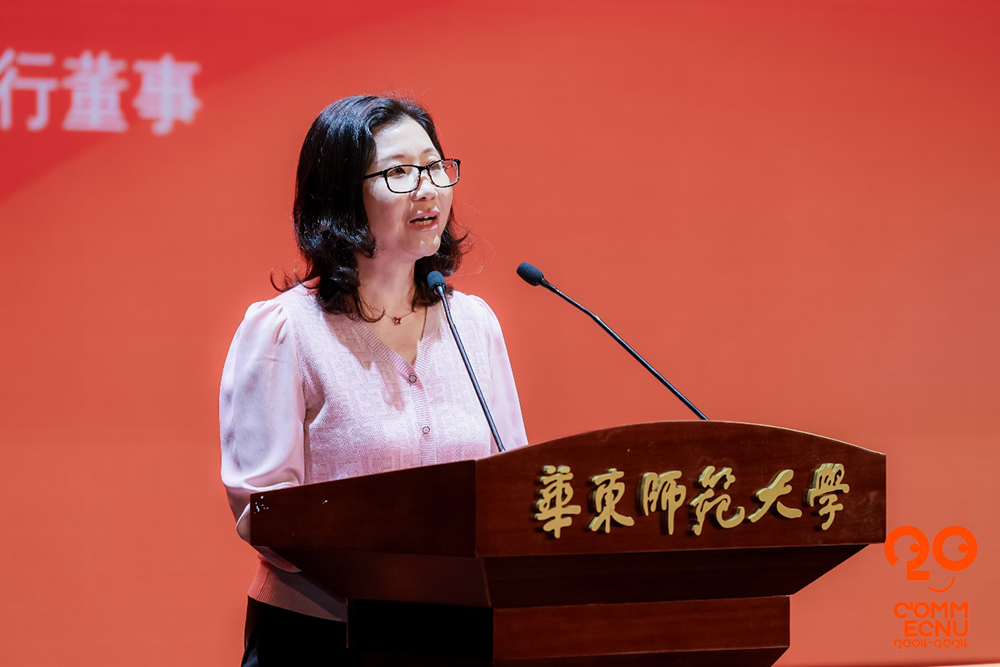 东方明珠新媒体股份有限公司副总裁、上海尚世影业有限公司执行董事、1992级影视教育专业(广播电视编导专业前身)毕业生鱼洁作为校友代表上台发言,讲述自己从丽娃河畔开启传媒职业生涯以来的拼搏历程与感悟,鼓励年轻学子刻苦勤勉、孜孜以求,担负起新时代的文化使命。
