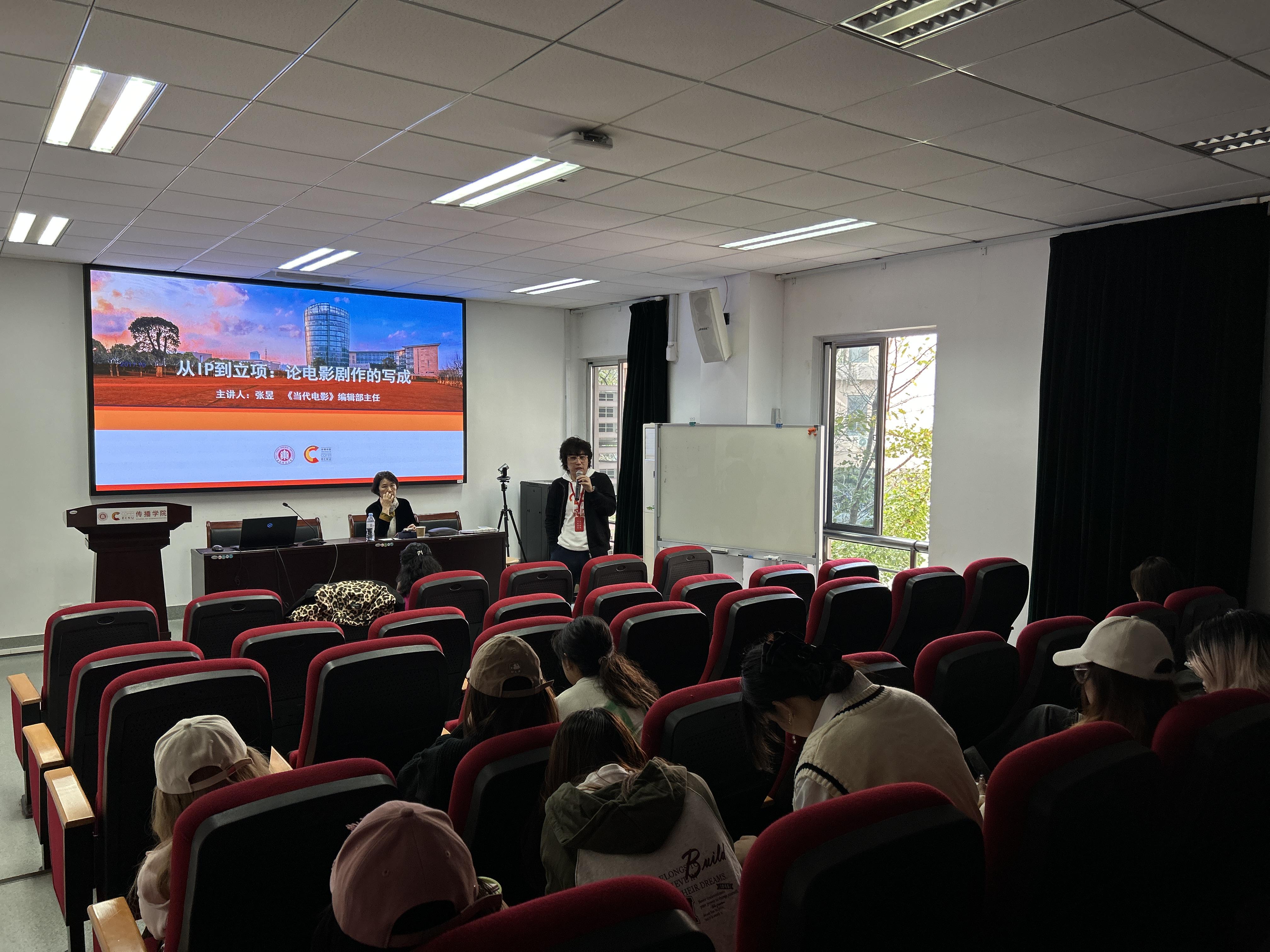 2024年10月30日上午,主题为“从IP到立项:论电影剧作的写成”的讲座在啪啪啦 212报告厅举行。本次讲座由《当代电影》编辑部主任张昱主讲,啪啪啦 影视创编中心主任刘弢主持。
