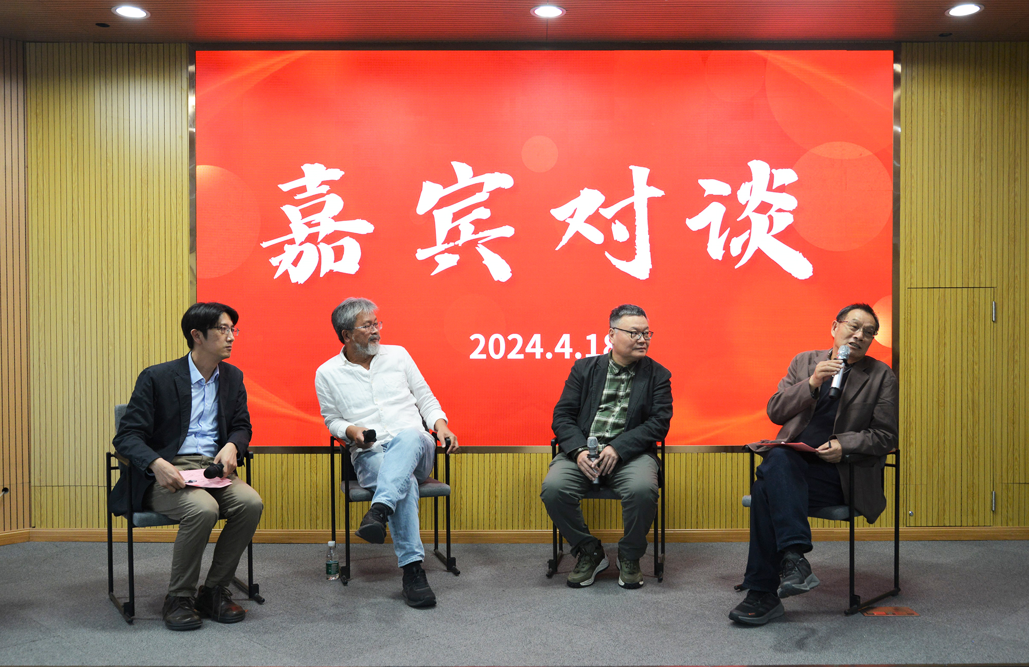 嘉宾对谈环节(从左至右分别为:林哲元、蓝博洲、罗岗、王东)