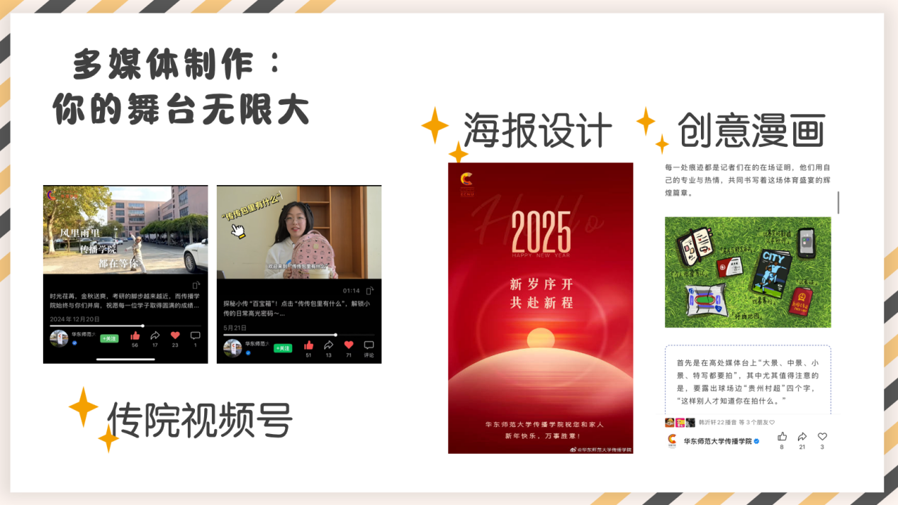 宣传中心以学院官方微博运营为主要职责,我们还会奔走在学院各类新闻现场,开展师生专访、新媒体专题策划等多样化特色专题工作。(你现在看的这份推送就是由我们组织成文的哦!)