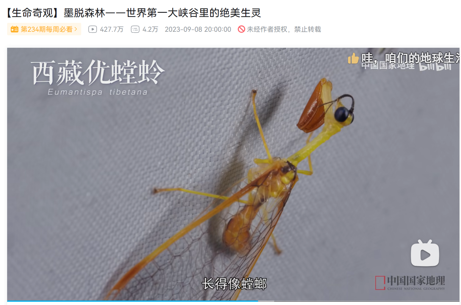 然而,眼前的荆棘是心中的勋章。“我们不能要求大自然随时为我们展现她的美,只能奢望她展现美的时候,我们恰好在那”,跋涉多次却拍摄无果,团队却收获了别样的人生体验;爬上流石滩,绿绒蒿和绢蝶的生命飞舞让他们觉得一切值得;穿越雨林后,全副武装的桂皓璇手臂上依旧留下了被虫子叮咬的“红疙瘩”,但她仍然觉得这段野外冒险的经历格外迷人。对于科学的极致追求、对于自然的极致热爱,让桂皓璇穿梭在生命奇观的体验中,拨开荆棘,带着我们看到那片欣欣向荣的神奇世界。