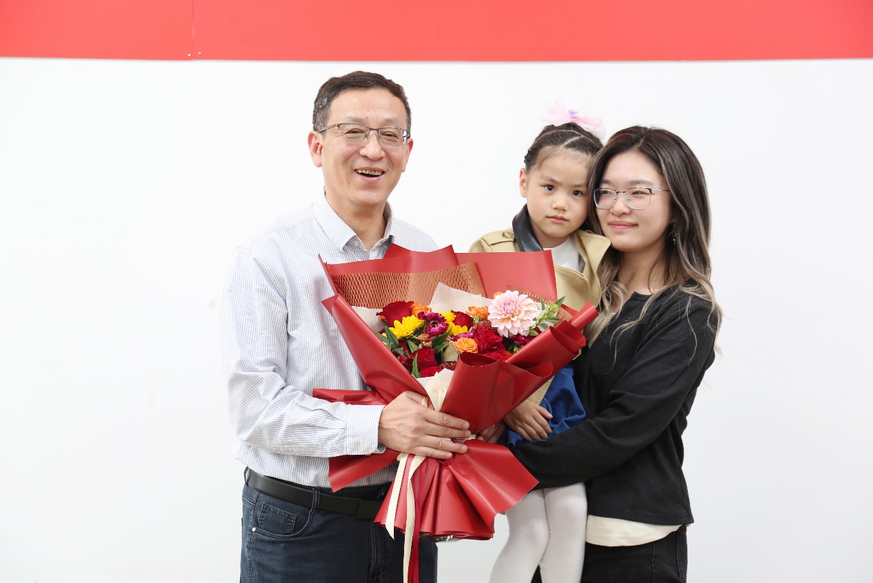 朱文佳书记首先在致辞中代表全院向方奇华老师的默默奉献与辛勤耕耘表达感谢。学院教职工代表龚余晶老师和“传二代”小朋友、学生代表博士生王璞代表雷启立副校长和出版学院教师代表季桂保执行院长共同为方奇华老师献上鲜花。