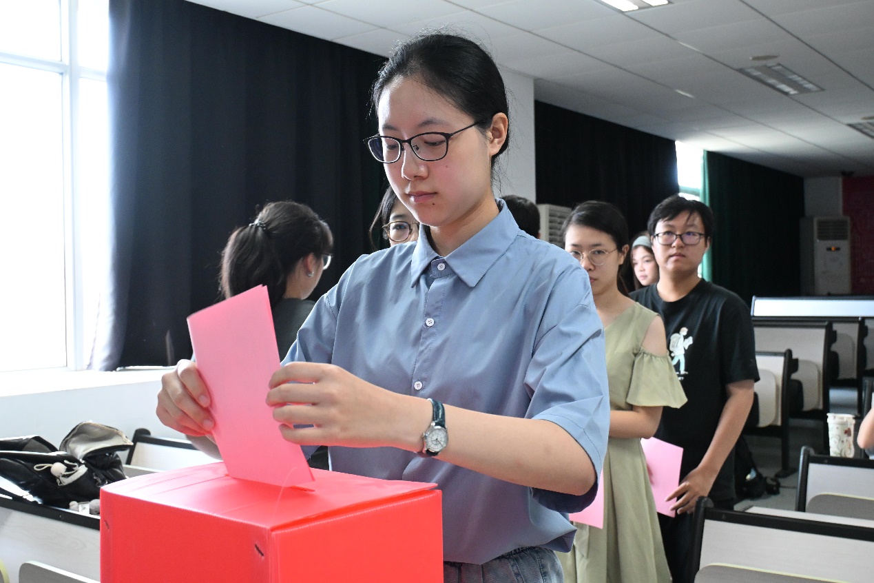 主席团竞选候选人发言结束后,参会学生代表行使表决权,进行投票,在四名候选人中选出新一届学生会主席团成员。